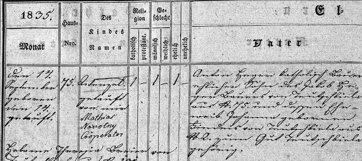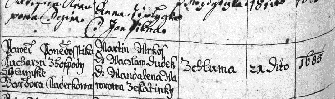 ukázka zdobné formy vývodu do 3. kolene Marie Karoliny Antonie Jindřišky svobodné paní (baronky) Sedlnické z Choltic